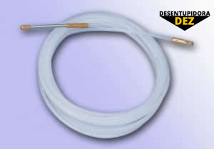 A mangueira utilizada é de borracha de alta resistência e aço, com flexibilidade suficiente para ser colocada dentro das tubulações e feito o serviço.